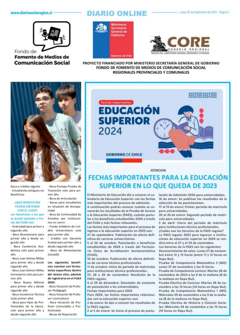 www.diariosextaregion.cl DIARIO ONLINE Lunes 25 de Septiembre de 2023 - Página 3