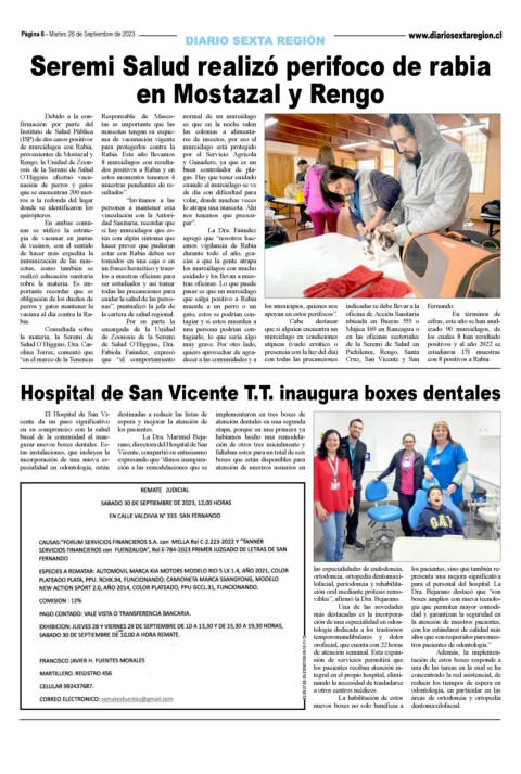 Salud O´Higgins, Dra. Car- de Salud O´Higgins, Dra. muy grave. Por otro lado, atípicas (vuelo errático o de la Seremi de Salud en positivos y al año 2022 se
