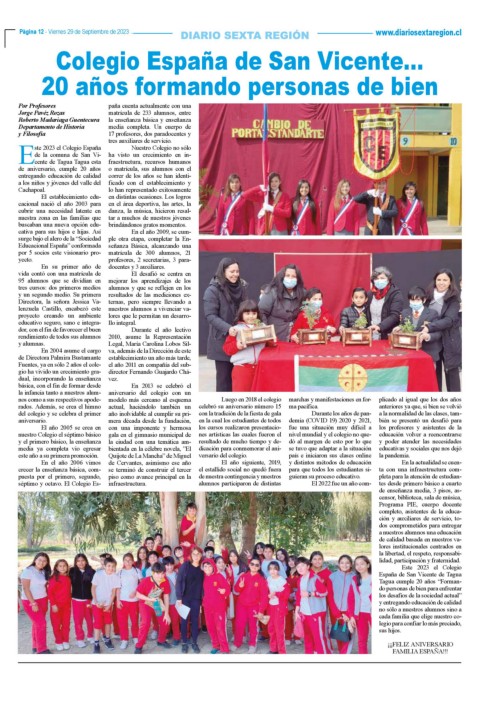 Página 12 - Viernes 29 de Septiembre de 2023 www.diariosextaregion.cl