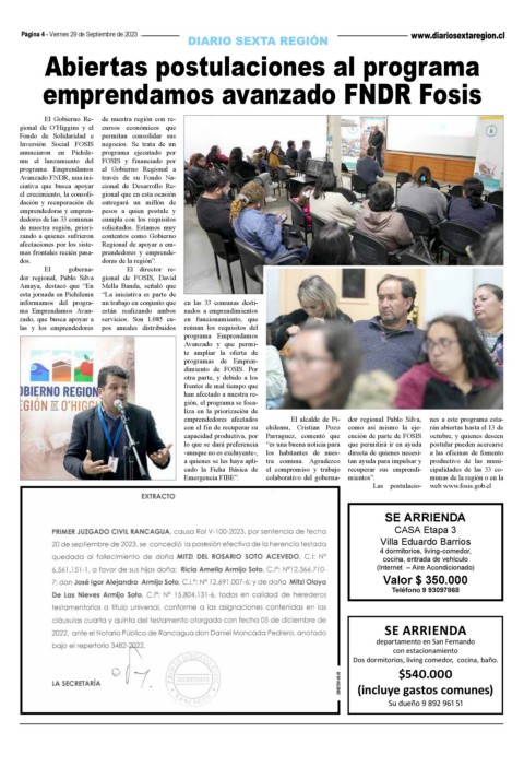 emprendedores afectados El alcalde de Pi- dor regional Pablo Silva, nes a este programa esta-