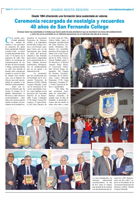 Página 12 - Martes 2 de Abril de 2024 www.diariosextaregion.cl
