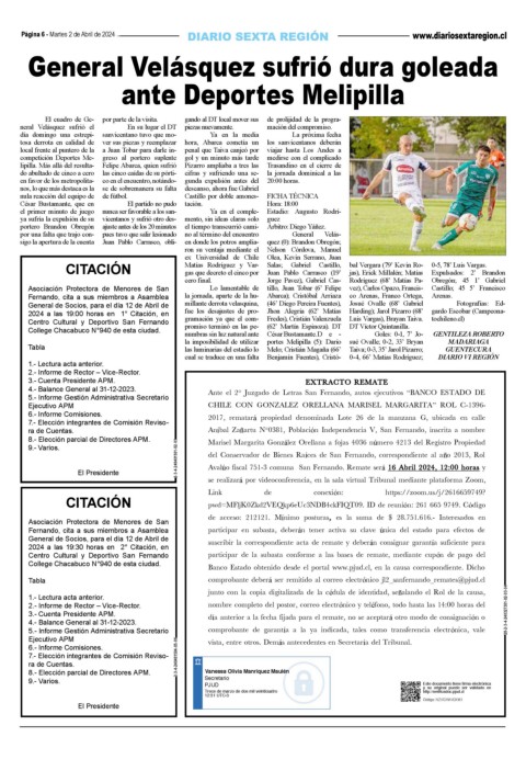 cual se traduce en una falta Benjamín Fuentes), Cristó- 0-4, 66’ Mat A b r i l 2 0 2 4 , 1 2 : 0 0 hDIARIO VI REGIÓN
