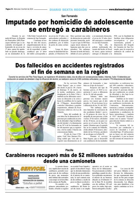 los 48 siniestros que se registra- fue en la comuna de Palmilla, fracciones por conducción a