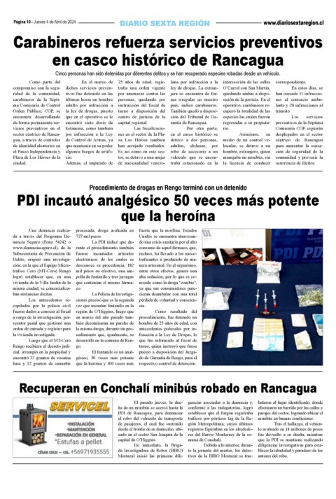de forma permanente ser- encontró siete dosis de capital regional. rantía de Rancagua. regresadas a su propieta- preventivos de la Séptima