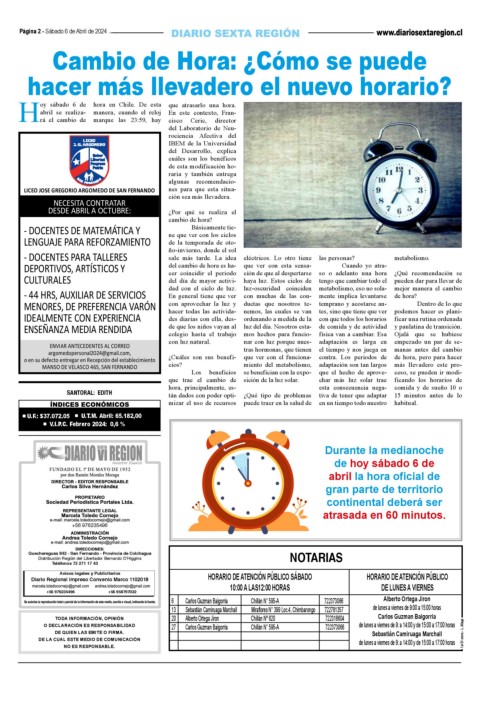 oy sábado 6 de hora en Chile. De esta que atrasarlo una hora.
