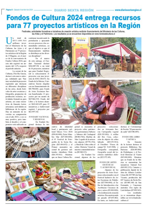 Página 8 - Sábado 6 de Abril de 2024 www.diariosextaregion.cl