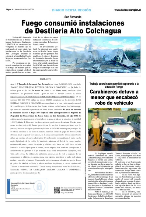 subasta para el d a 1 14 de mayo de 2024, a las 112:00 horas, mediante video Carabineros detuvo a