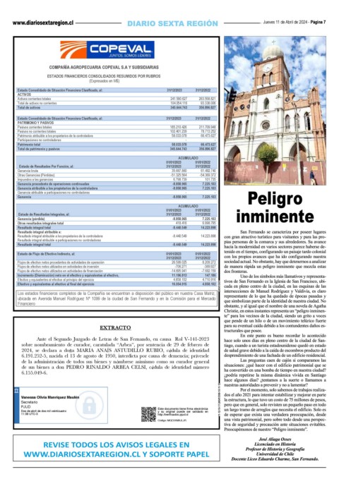 Dos de abril de dos mil veinticuatro 31/12/2023 31/12/2022 inminente