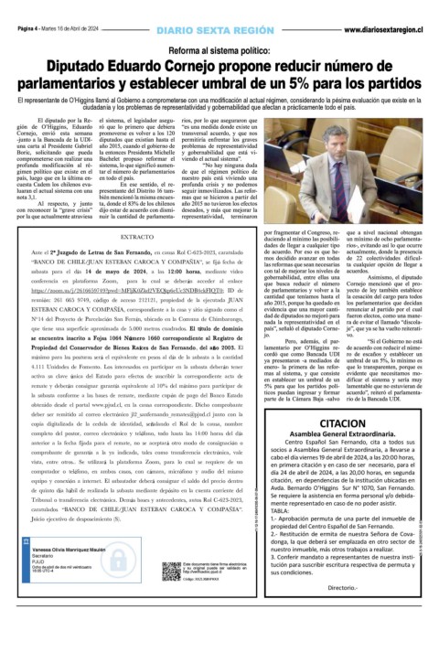 equipo y conexi n a internet. El subastador deber consignar el saldo del precio dentro í Asamblea General Extraordinaria.
