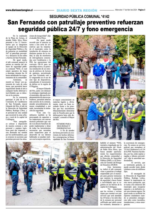 Miércoles 17 de Abril de 2024 - Página 3 SEGURIDAD PÚBLICA COMUNAL *4142 San Fernando con patrullaje preventivo refuerzan seguridad pública 24/7 y fono emergencia