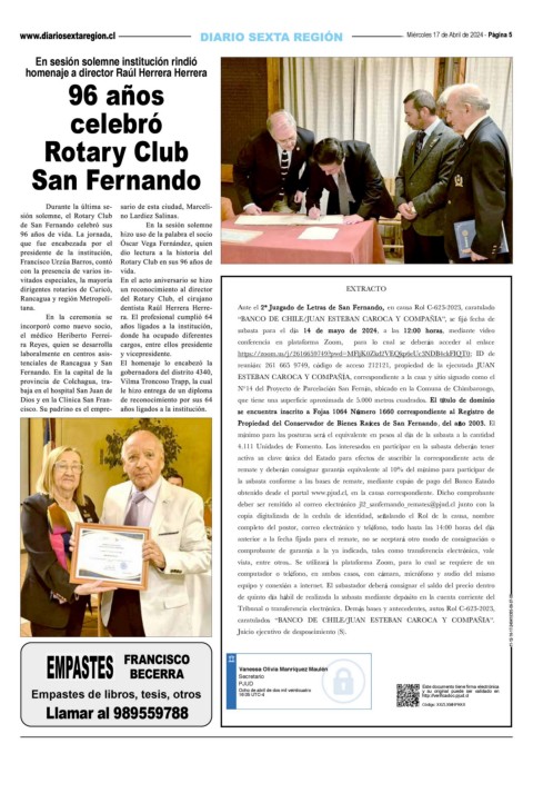 Ante el 2 2 Juzgado de Letras de San Fernando, º º J u z g a d o d e L e t r a s d e S a n F e r n a n d o en causa Rol C-623-2023, caratulado