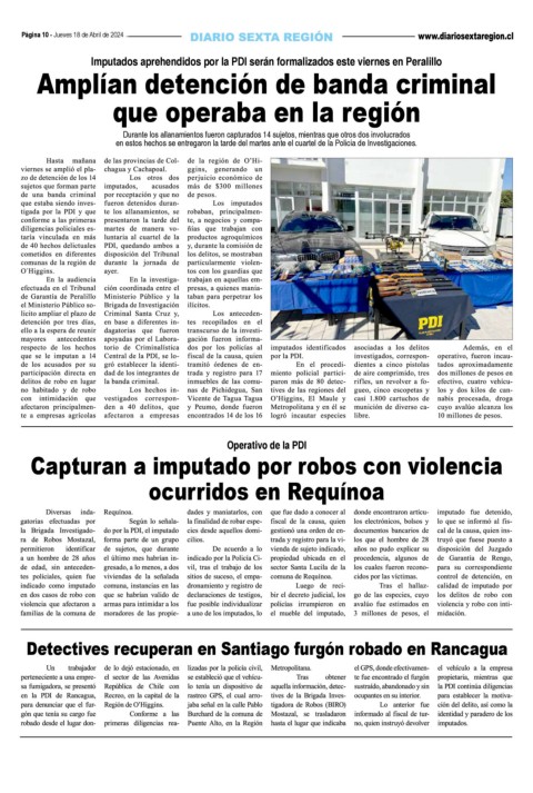 Imputados aprehendidos por la PDI serán formalizados este viernes en Peralillo