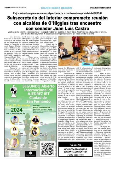 La cita se podría dar en las próximas semanas y busca poder trabajar con los ediles en el control de la Ruta 5 Sur y vías estructurantes de la región,