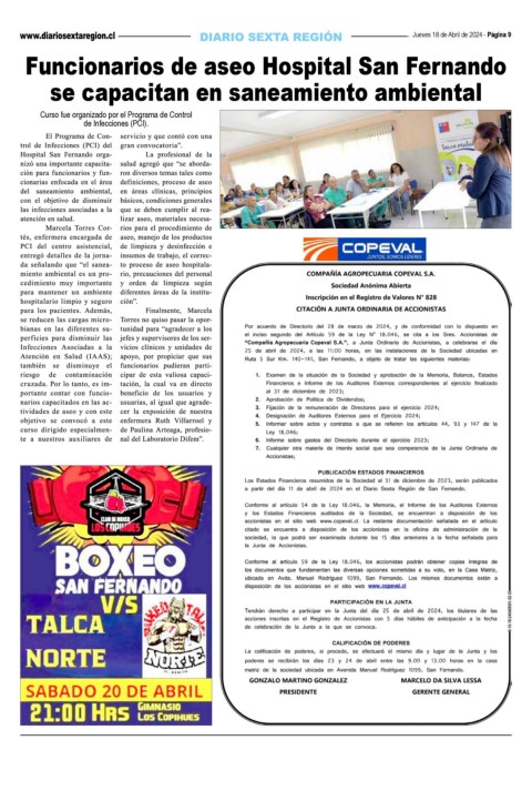 a partir del día 11 de abril de 2024 en el Diario Sexta Región de San Fernando.