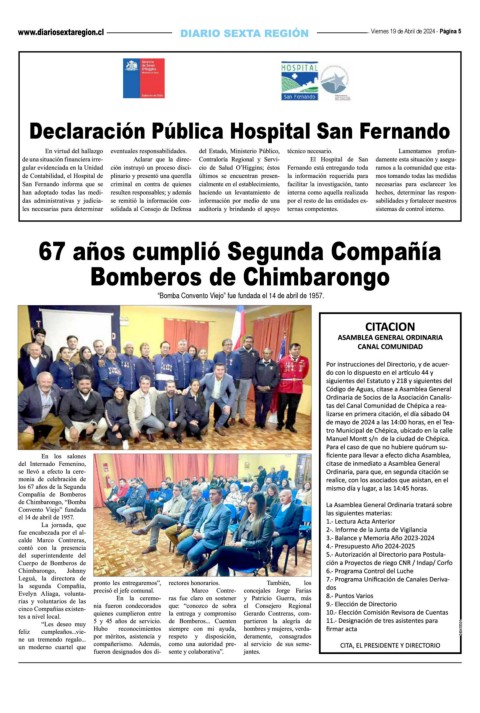 Contraloría Regional y Servicio de Salud O’Higgins; éstos últimos se encuentran