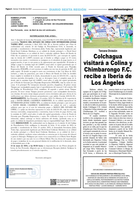 o quien la Subrogue. Publ quese por cuatro veces consecutivas en el Diario Sexta Regi n ó í