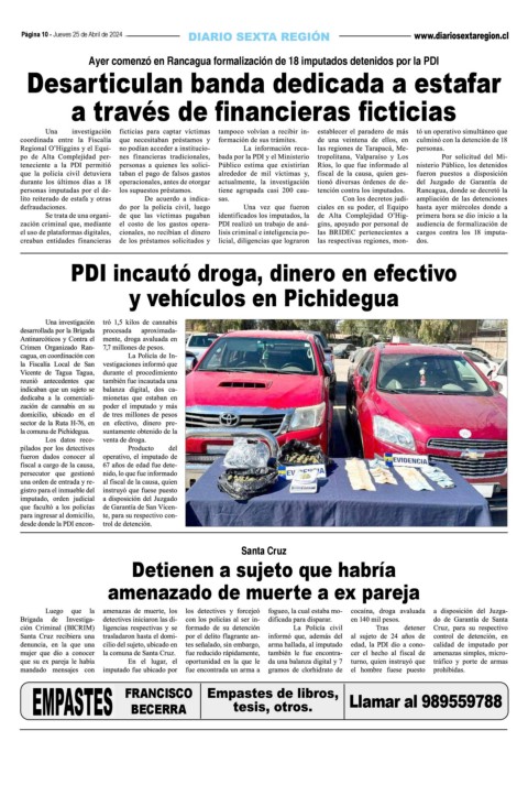 Ayer comenzó en Rancagua formalización de 18 imputados detenidos por la PDI