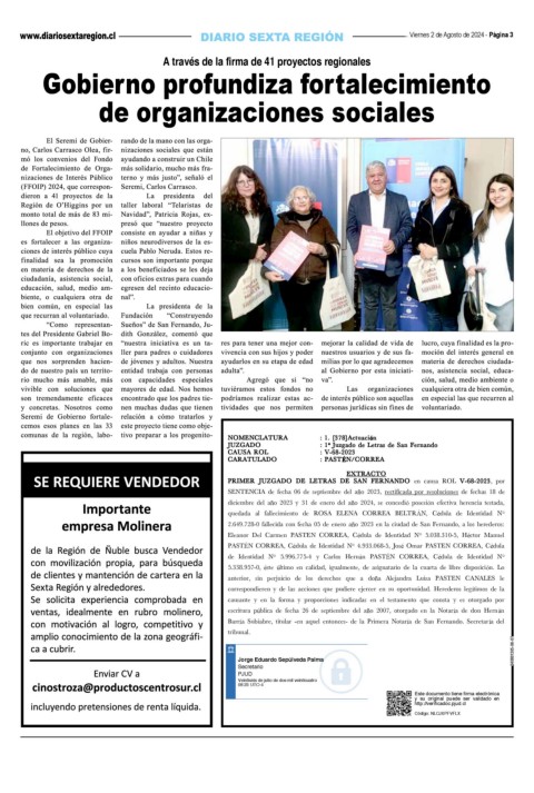 ñ JUZGADO DE LETRAS DE SAN FERNANDO en causa ROL VV-68-2023, por