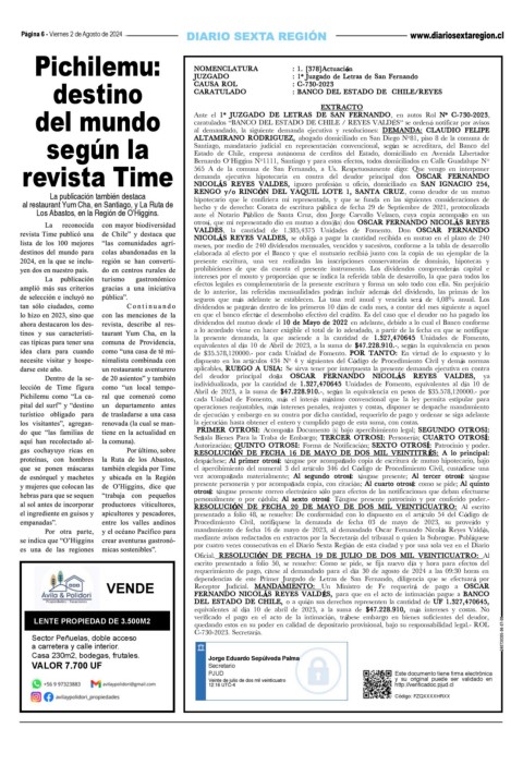 del mundo Ante el 1 JUZGADO DE LETRAS DE SAN FERNANDO, en autos Rol N C-730-2023,