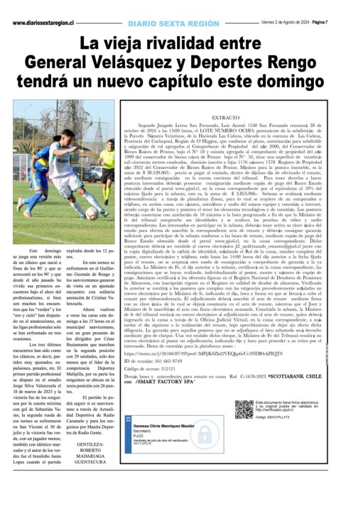 comprobante deber ser remitido al correo electr nico jl2_sanfernando_remates@pjud.cl junto con