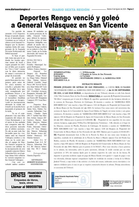 los cinco minutos su Pavez (80’ Kevin Serra- P PRIMER JUZGADO DE LETRAS DE X SAN FERNANDO, en E O L C - 7 1 6 - 2 0 2 3