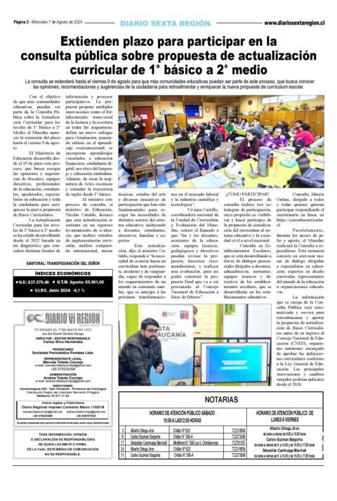 TODA INFORMACIÓN, OPINIÓN 10 Carlos Guzman Baigorria Chillán N° 595-A 722373066 de lunes a viernes de 9:00 a 15:00 horas