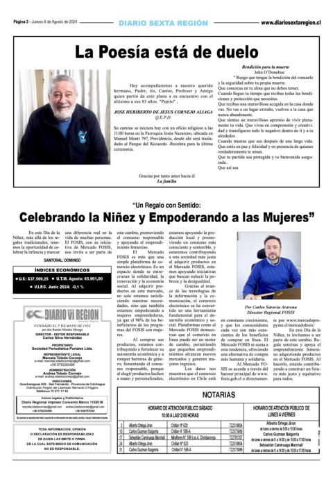 TODA INFORMACIÓN, OPINIÓN 10 Carlos Guzman Baigorria Chillán N° 595-A 722373066 de lunes a viernes de 9:00 a 15:00 horas