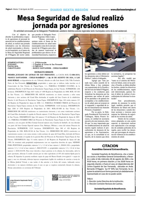 “ “ B BANCO SANTANDER - CHILE/RAM REZ”, el d a 28 DE AGOSTO DE 2024, A LAS