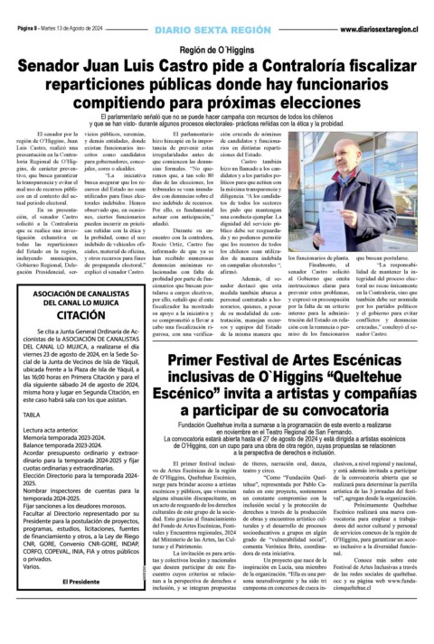 loría Regional de O’Hig- para gobernadores, conce- que comiencen las denun- Castro también