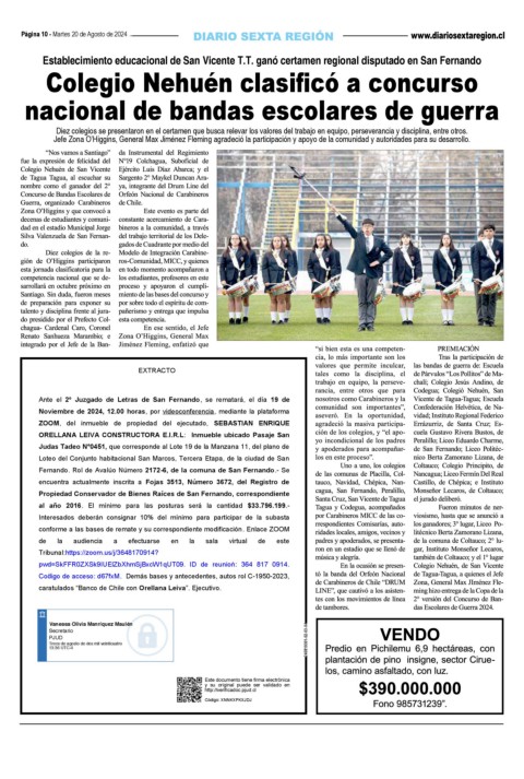 Ante el 2º Juzgado de Letras de San Fernando, se rematará, el día 19 de