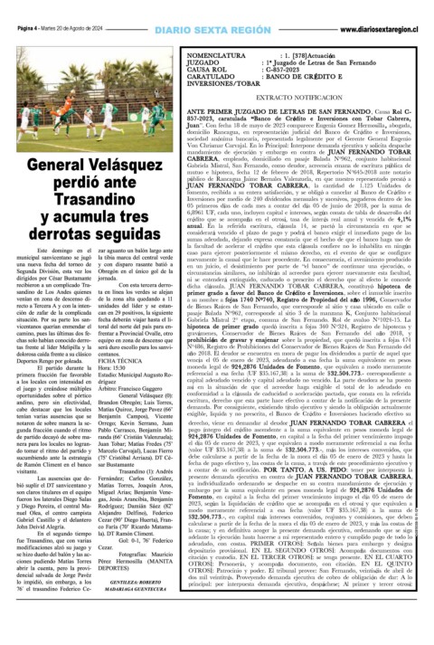 consecutivas en el Diario Sexta Regi n de esta ciudad y por una sola vez en el Diario
