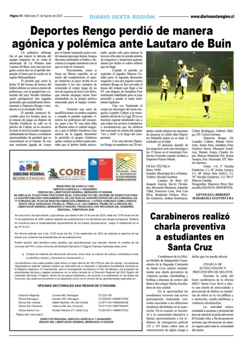 Se comunica a los agricultores y agricultoras que desde el día 15 de julio de 2024, hasta las 12:00 horas del día Carabineros realizó