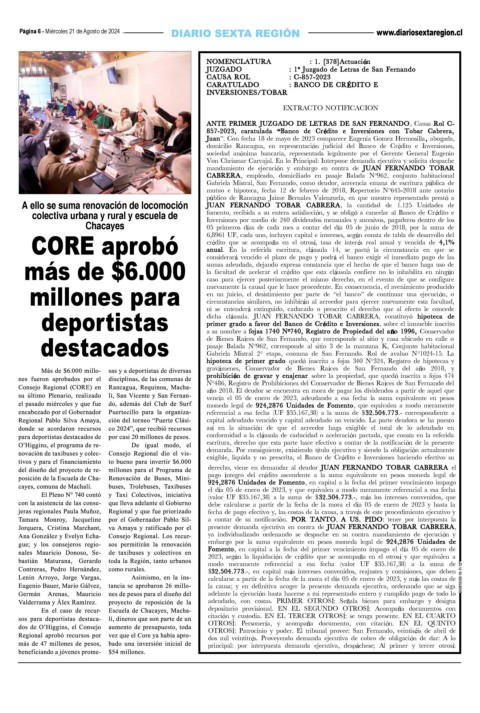 consecutivas en el Diario Sexta Regi n de esta ciudad y por una sola vez en el Diario