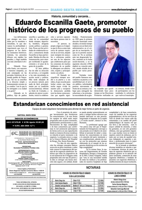 TODA INFORMACIÓN, OPINIÓN 10 Carlos Guzman Baigorria Chillán N° 595-A 722373066 de lunes a viernes de 9:00 a 15:00 horas
