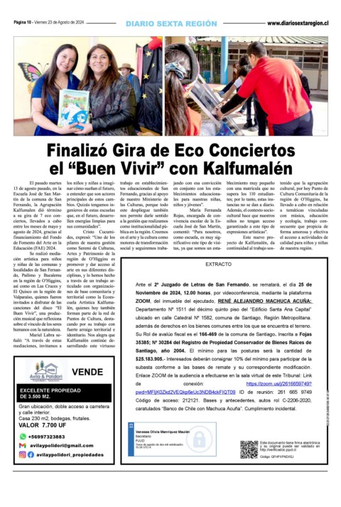 Ante el 2º Juzgado de Letras de San Fernando, se rematará, el día 25 de