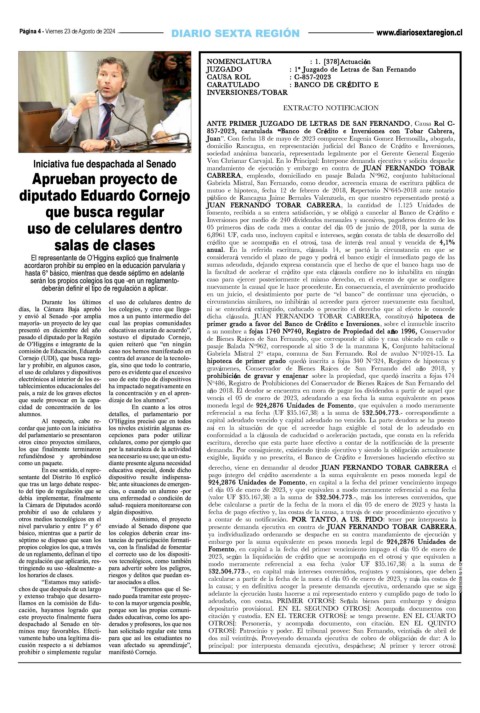 consecutivas en el Diario Sexta Regi n de esta ciudad y por una sola vez en el Diario
