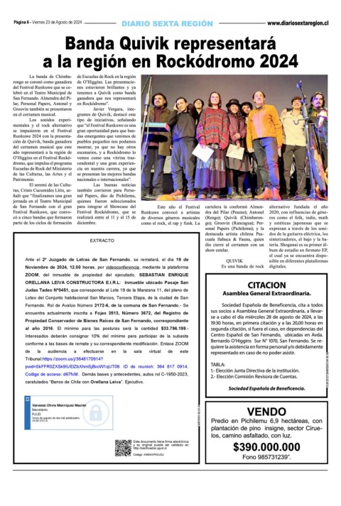 Ante el 2º Juzgado de Letras de San Fernando, se rematará, el día 19 de
