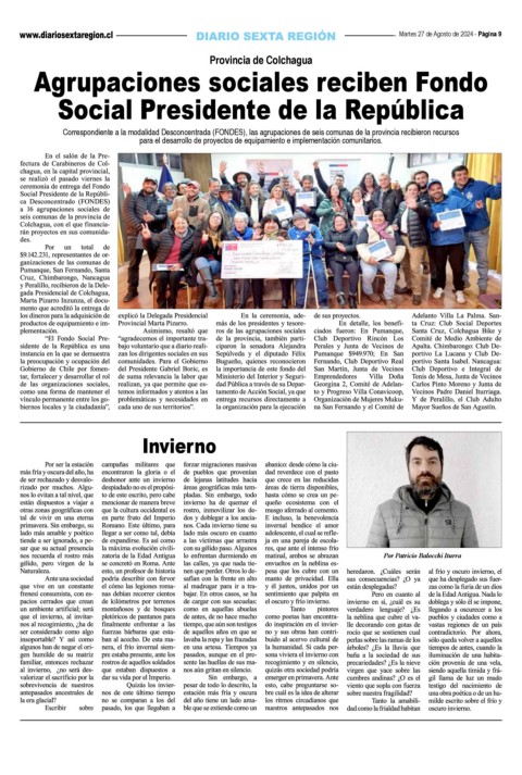 Correspondiente a la modalidad Desconcentrada (FONDES), las agrupaciones de seis comunas de la provincia recibieron recursos