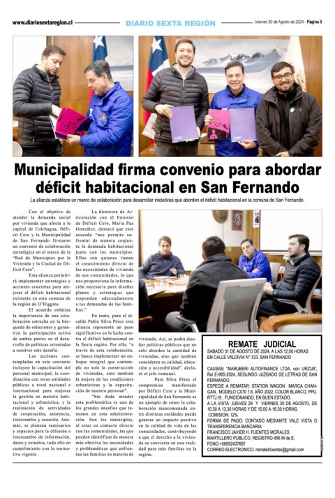 La alianza establece un marco de colaboración para desarrollar iniciativas que aborden el déficit habitacional en la comuna de San Fernando.