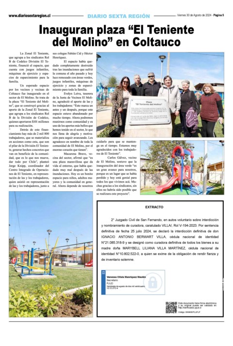 y nombramiento de curadora, caratulado VILLA/, Rol V-194-2023. Por sentencia