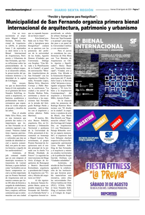 Viernes 30 de Agosto de 2024 - Página 7 “Percibir y Apropiarse para Resignificar”: Municipalidad de San Fernando organiza primera bienal internacional de arquitectura, patrimonio y urbanismo