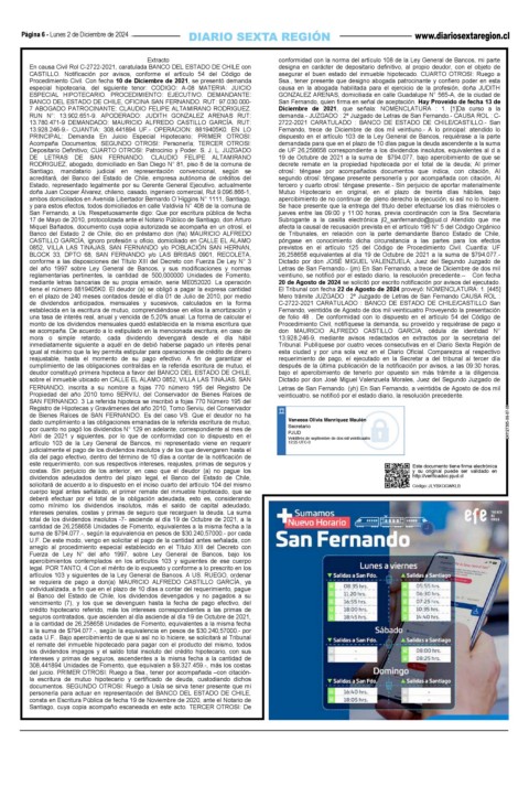 inmediatamente siguiente a aquél en de debió haberse pagado un interés penal Tribunal. Publíquese por cuatro veces consecutivas en el Diario Sexta Región de