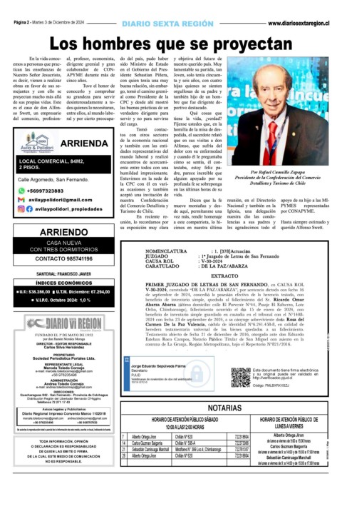 V.I.P.C. Octubre 2024: 1,0 % V V-30-2024, caratulada DE LA PAZ/ABARZA , por sentencia dictada con fecha 16“ de septiembre de 2024, concedi la posesi n efectiva de la herencia testada, con O m a r