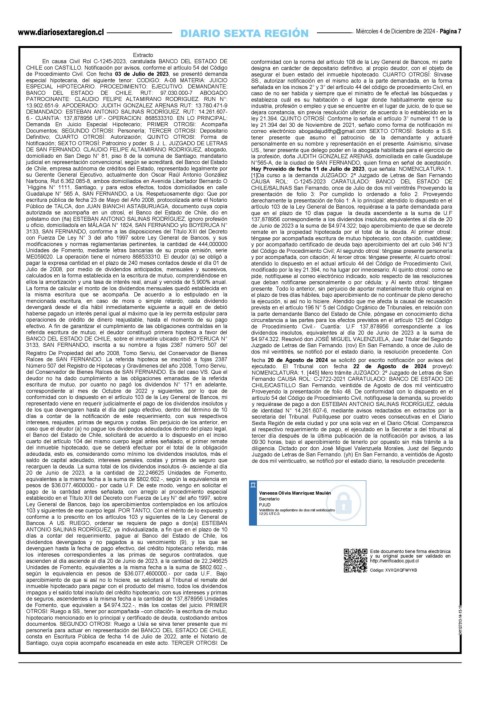deudor no ha dado cumplimiento a las obligaciones emanadas de la referida Fernando CAUSA ROL: C-2722-2021 CARATULADO: BANCO DE ESTADO DE