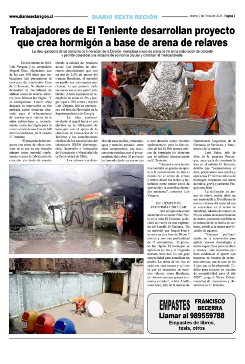 La idea -ganadora de un concurso de innovación de la División- reemplaza el uso de arena de río en la elaboración de concreto