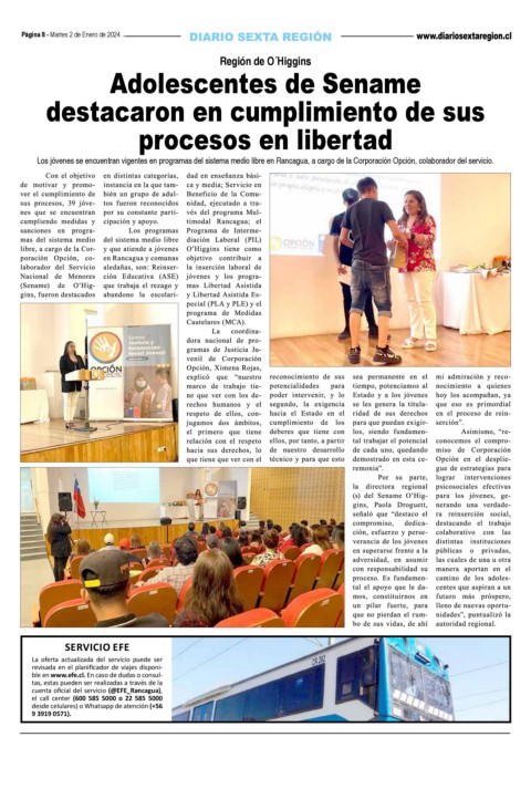 Los jóvenes se encuentran vigentes en programas del sistema medio libre en Rancagua, a cargo de la Corporación Opción, colaborador del servicio.