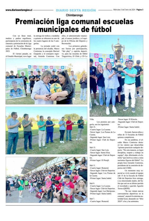 Miércoles 3 de Enero de 2024 - Página 3 Chimbarongo Premiación liga comunal escuelas municipales de fútbol