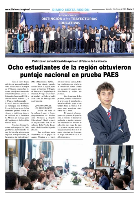 Miércoles 3 de Enero de 2024 - Página 9 Participaron en tradicional desayuno en el Palacio de La Moneda Ocho estudiantes de la región obtuvieron puntaje nacional en prueba PAES