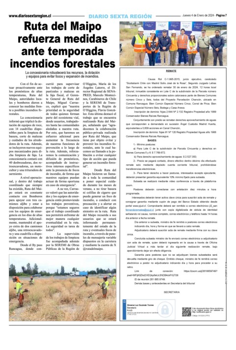 Conjuntamente con predio se rematan derechos aprovechamiento de aguas