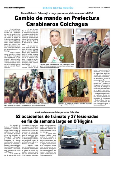 Coronel Eduardo Palma dejó el cargo para asumir jefatura nacional del OS-7